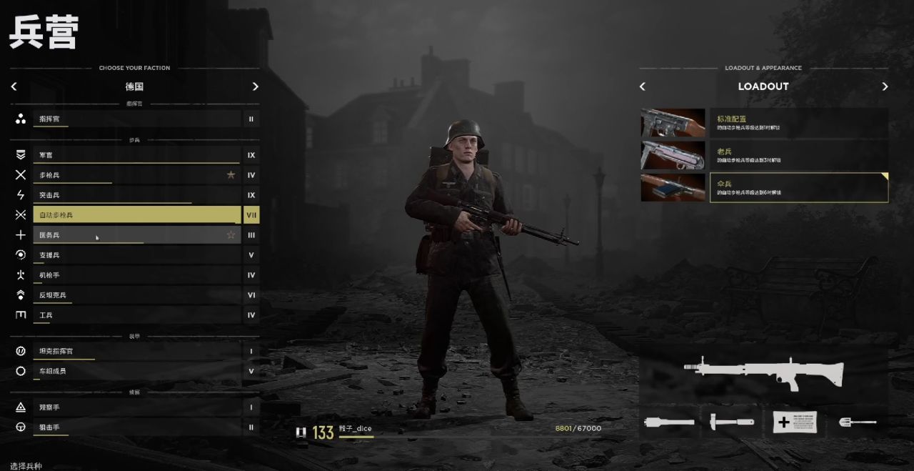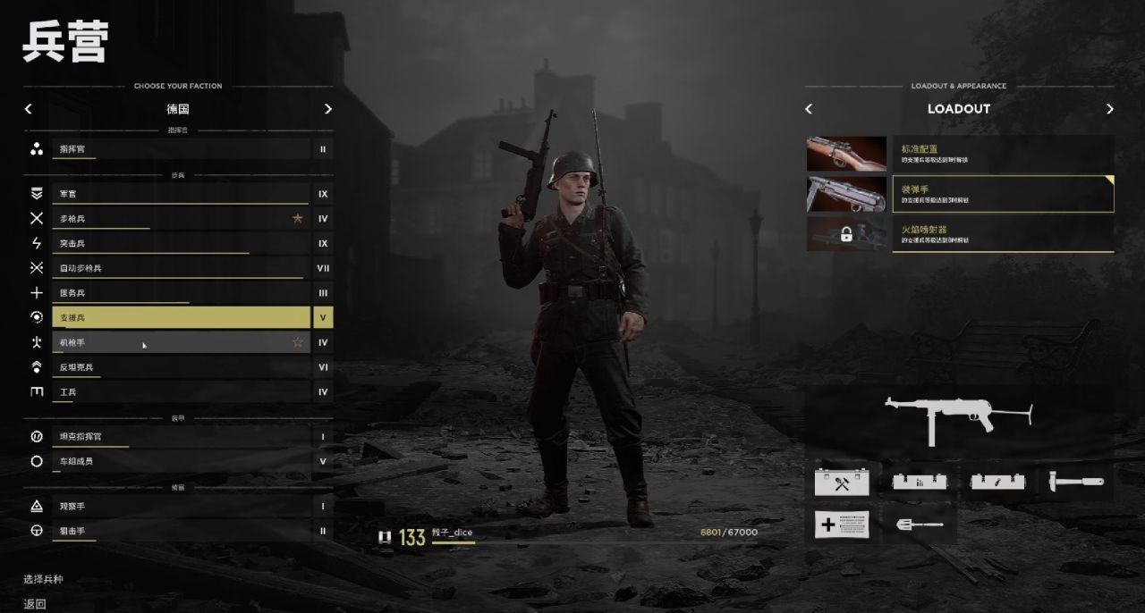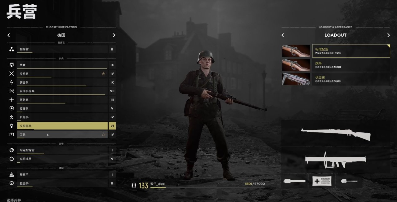 能對敵軍載具造成最大威脅的兵種,一級AT兵攜帶長槍和筒子上場。筒子想要精準打中敵方載具需要大量練習,不推薦初入戰場的萌新使用。