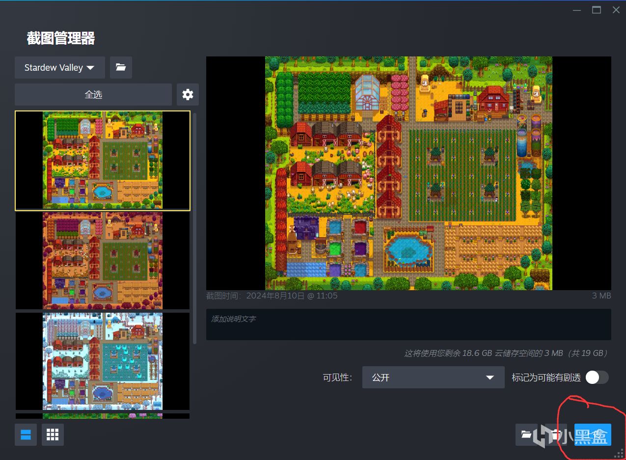 然後打開steam遊戲界面,看到3張截圖,點擊它。自己開始時按幾下F12就有幾個截圖,這邊我要上傳3張,就整了3個。
