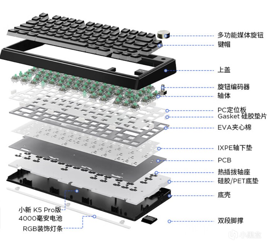 省流:小新K5PRO 75%配列 三模連接熱插拔 gasket結構+4層填充 支持聯想相關的AI和Mac+win雙系統模式 原價249 打折229塊