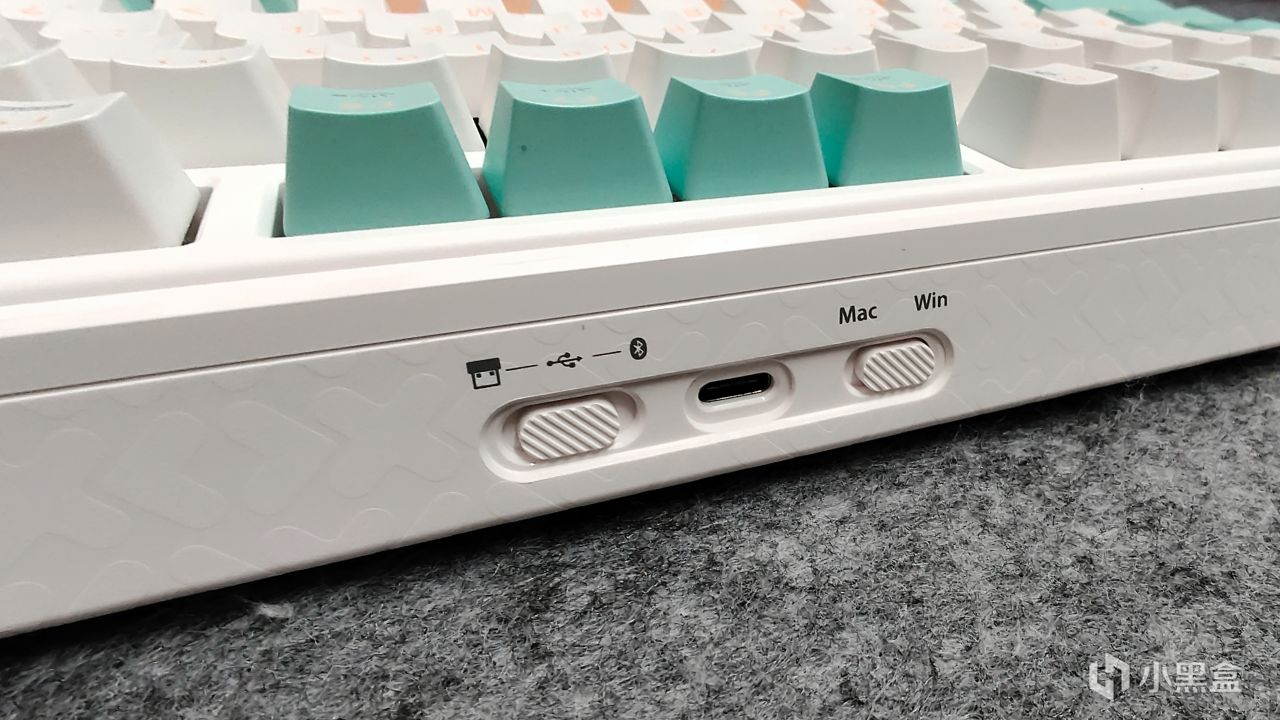 鍵盤的上方是模式切換開關 C口數據線口 還有系統模式切換開關,同時和底部一致有很多的小新LOGO,很好看