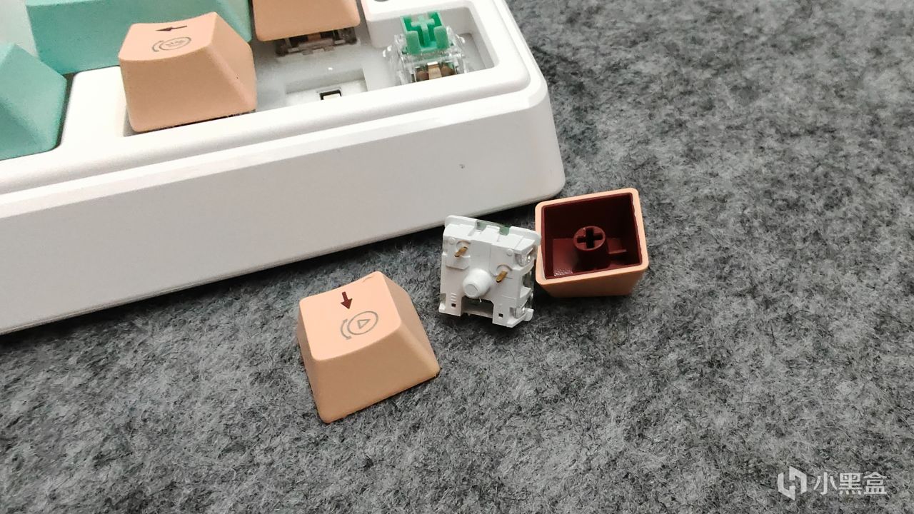軸體方面我這把採用的是環諾代工的薄荷奶綠軸,是個三腳軸 有圍牆 軸體穩定性不錯