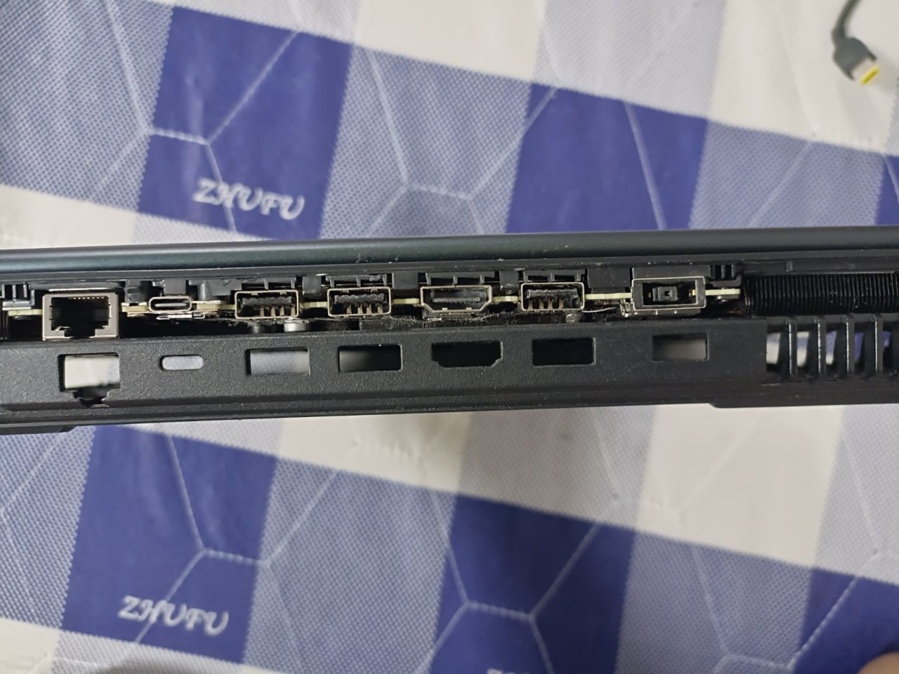 下面就是如何撬背面的外殼,對於外殼來說很多廠商做的各有特點,例如聯想拯救者側面通風口處我一開始就沒看懂分界線,因爲是第一次拆機所以銜接的比較緊。爲了方便觀看,我下面放幾張未拆機和拆機後的圖片方便理解。