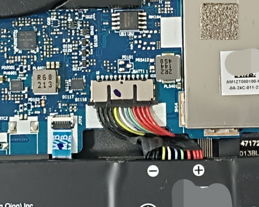 加裝硬盤之前,要先拔掉電源排線(藍色框),彩色電線連接一個黑色的插頭,黑色插頭插入鐵片外殼,黑色插頭兩側各有一個突出的着力點,可以用指甲往外推,直到剝離鐵皮外殼。