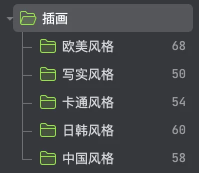 比如我新建了一個大文件夾爲【插畫】,那麼我將文件歸類其中之後,就可以再觀察這個【插畫】文件夾裏的圖還能按什麼維度去細分。