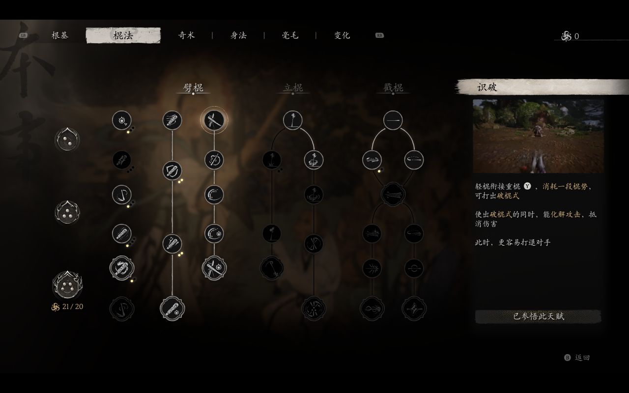 前兩章按照這樣點基本完全夠用,戰鬥的時候多攢棍勢,定身術打出硬直之後接重擊可以有效避免重擊打空的情況。
