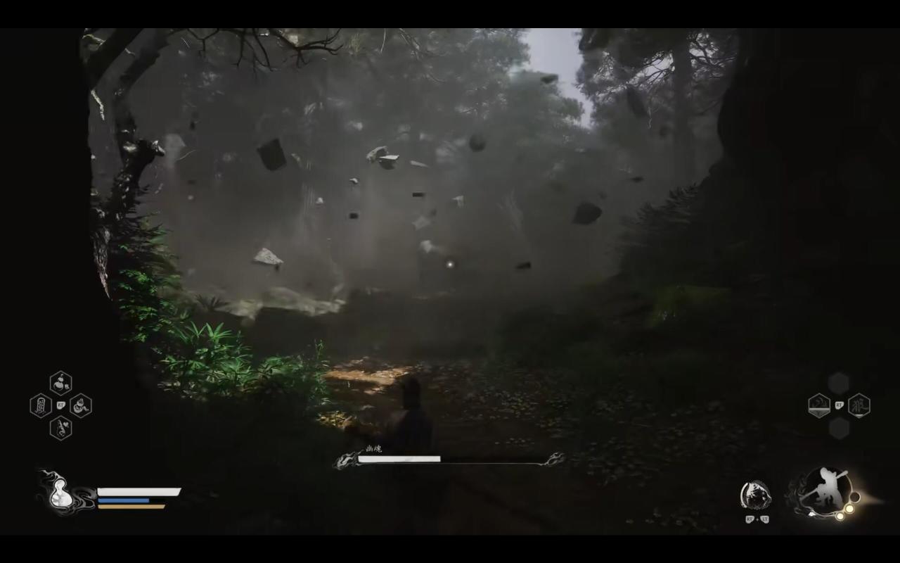 在他放技能的時候不要貪刀,一直閃避就好,注意你的氣力條,不要被逼到絕路。活用定身技能,定住之後直接蓄力重棍,一定要蓄力到棍勢滿。大頭兒子受到有棍勢的重棍大概率會硬直幾秒,這幾秒大家可以貪兩下輕擊,之後一定要拉開距離,方便我們觀察他的起手式。