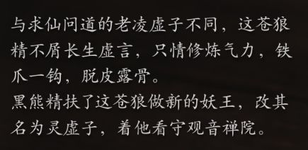 在術法與棍技的加持下,天命人很快就殺到了觀音庭院,裏面棲息着一隻狼妖,自稱靈虛子。