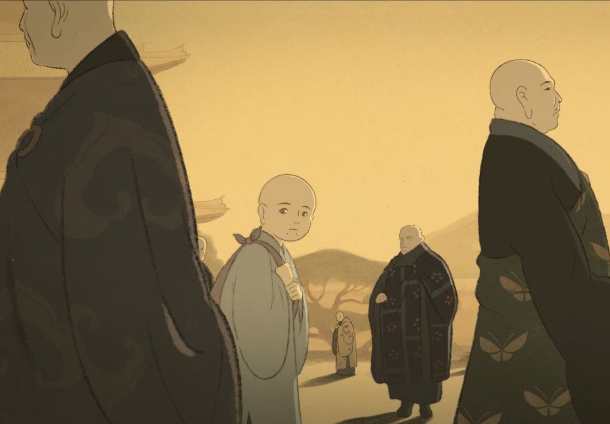 小和尚進入了廟宇,那些高僧穿着得道的袈裟,目中無人,頭顱高高揚起,而小和尚則是微低着頭,顫顫巍巍地暗中打量着高僧們。