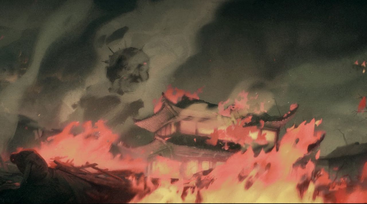 小和尚被燒死在了廟宇內,對地位的渴望卻讓他的執念在天空中長久地縈繞,經久不散。