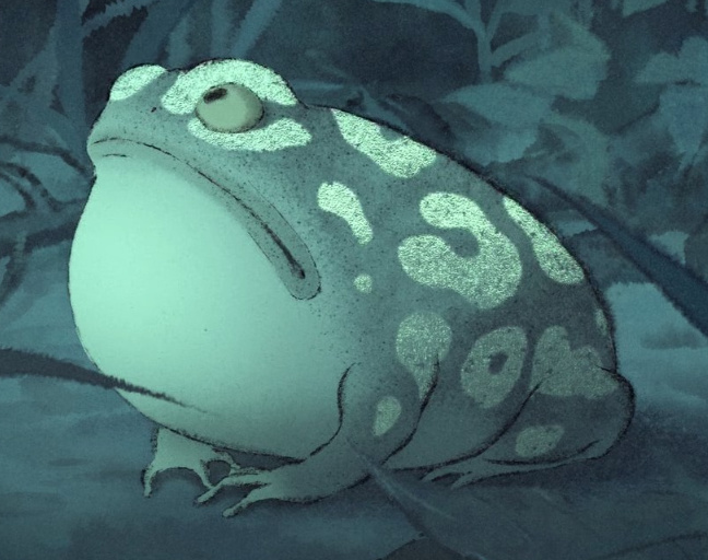 小和尚嚇破了膽,在地上連連祈禱,黑熊精見小和尚是出家人,依舊對青蛙的性命麻木無情,起了培養的心思。
