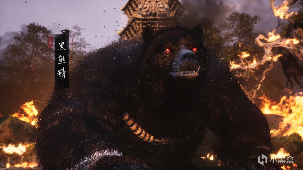 體驗及解析:大家覺得這個黑熊精很難,我感覺反而很笨重,連招很簡單。黑熊精二階段會使用火焰攻擊,務必先去獲得闢火罩後再來打,能簡單非常多。當他的拳頭有火焰覆蓋的時候,就是二階段了,可以用闢火罩。我在打的時候不熟悉按鍵,所有沒有用闢火罩也過了。打的時候不需要我們主動靠近他,他會自己砸過來,給我們輸出空間。