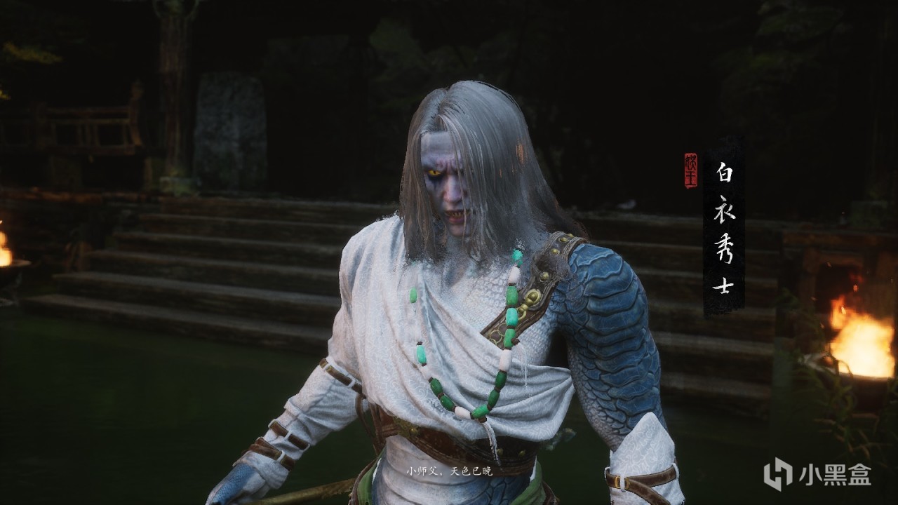 體驗及解析:白衣秀士注意是有兩個階段的,這也是第一個有雙形態的BOSS,我就是跌倒在了這裏,以爲只有一階段,結果把酒全喝完了,二階段被刮死了。白衣秀士並沒有啥難度,出招比較慢,輕棍可以對他有輕微連招控制的感覺。