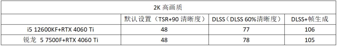 至於i5-12600KF和銳龍5 7500F分別的對性能的影響,在2K高畫質的《黑神話:悟空》依然沒有體現出來。由此可以看到,對於2K用戶來說,要《黑神話:悟空》,必須要RTX 4060 Ti才能確保有比較流暢的遊戲畫面。