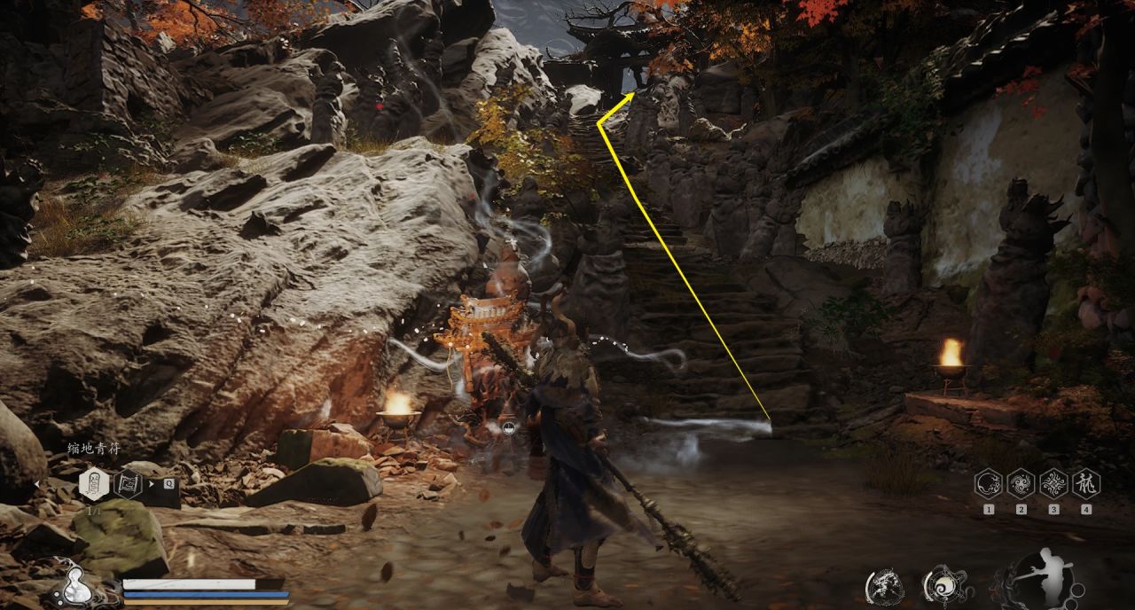路線的話大概三個二段加一個單跳就能上去了,然後開啓土地廟往上走