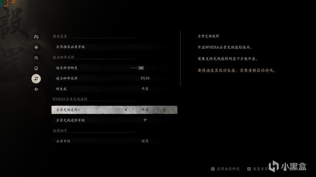4K分辨率,打開DLSS(50清晰度),打開光追,等級中,超高畫質,運行測試,平均幀數80。