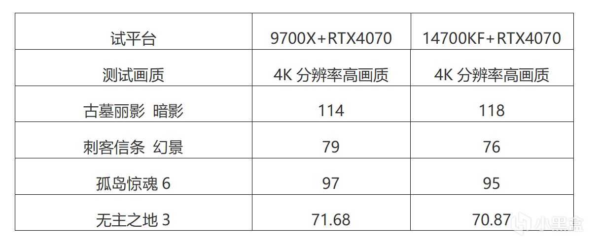 選取幾款有代表性的遊戲大作,使用這兩個平臺,測試整機的遊戲性能。使用4K分辨率,將遊戲畫質設置爲次最高畫質,並不單獨設置每一項,如無BENCHMARK,就使用軟件測試FRAPS平均幀數。