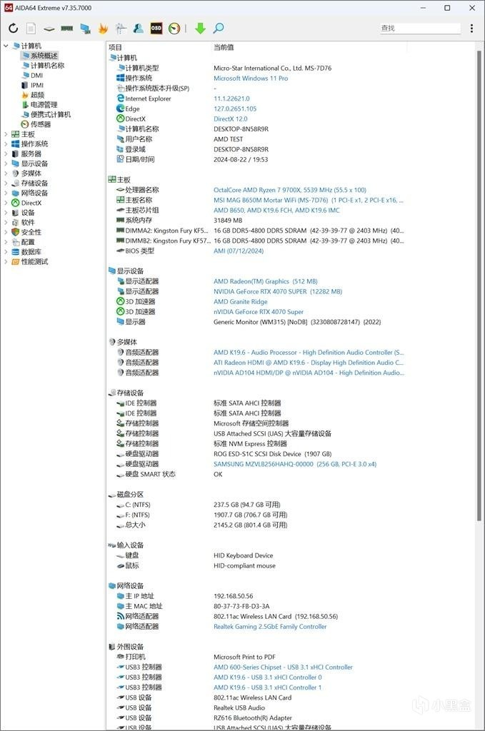 AIDA64整機硬件信息