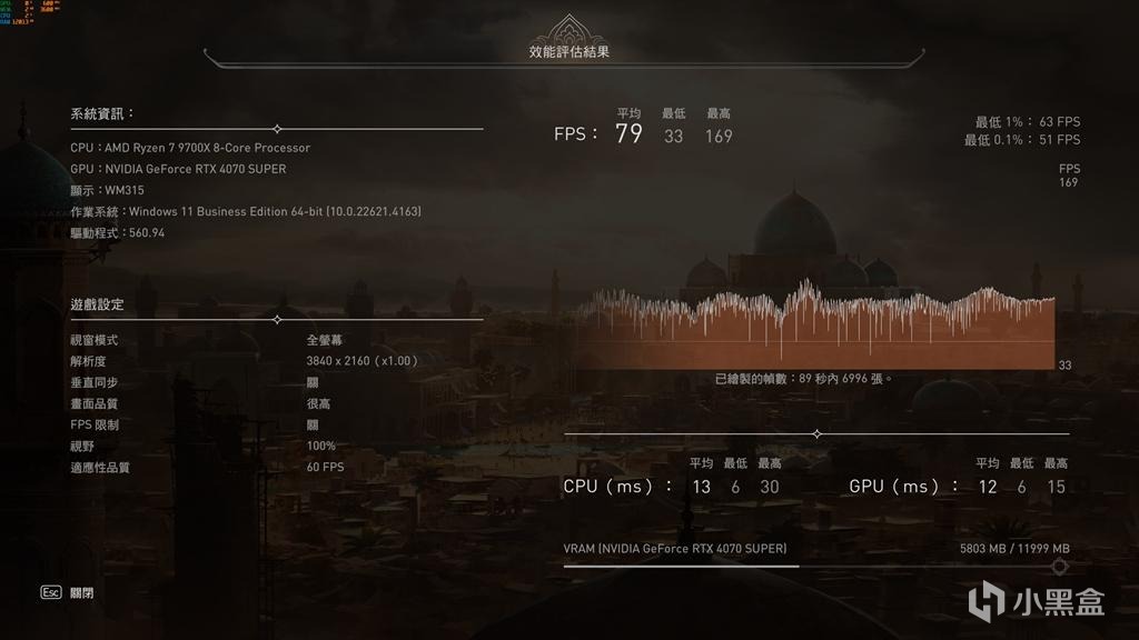 4K分辨率,最高畫質,運行測試,平均幀數79。