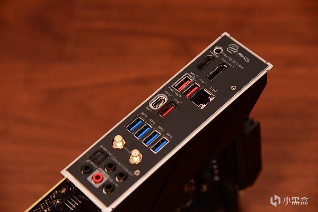 主板的IO區採用了常規設計,視頻輸出接口有HDMI和DP接口,USB3.2 A型接口,WIFI天線都有配備,同樣的,20Gbps的USB3.2 GEN2x2 TYPE-C接口也是標準配置。