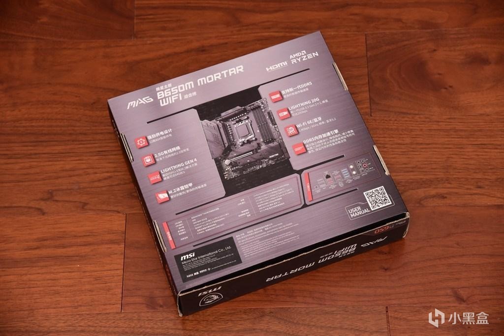 開箱,微星B650M MORTAR WIFI採用了6層PCB設計,繼承了迫擊炮系列的黑白灰三色風格。