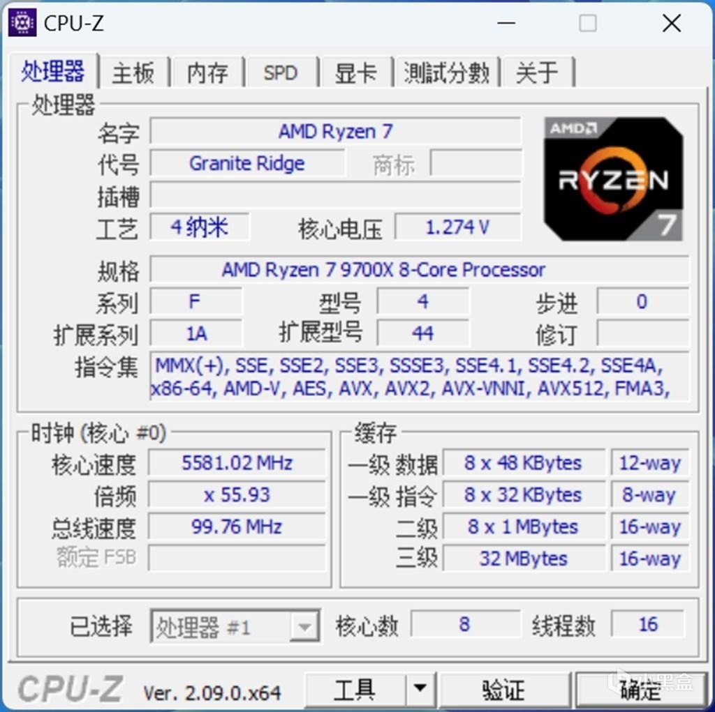 Ryzen 7 9700X集成核顯AMD Radeon Graphics,顯示核心頻率爲2200MHz,4組光柵單元,8組紋理處理單元。