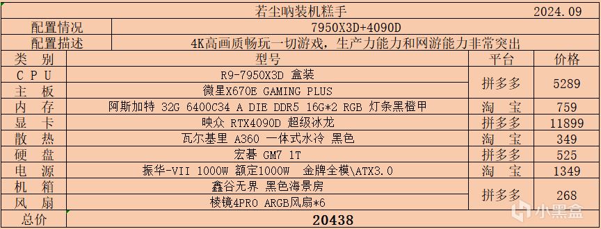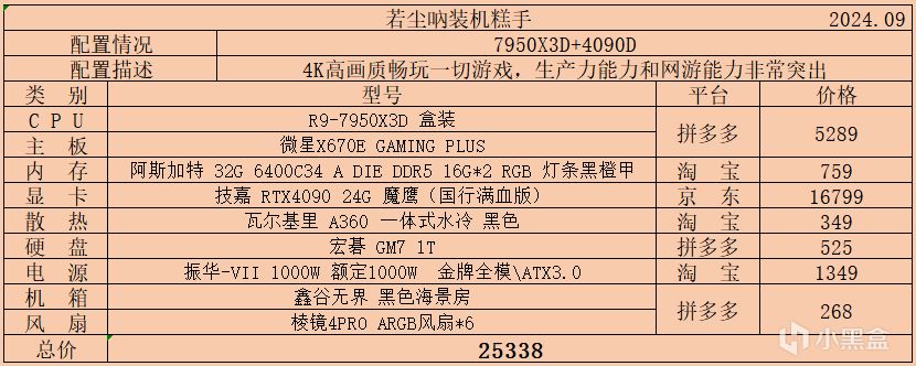 十二:最後老規矩,附帶二個CPU以7950X3D爲主的4090D以及4090的一個常規搭配推薦,預算充足的盒友可以借鑑: