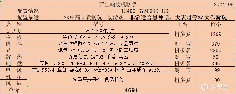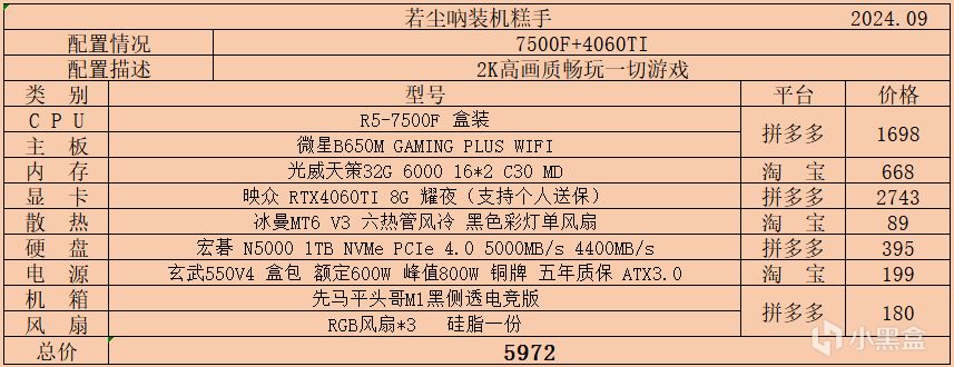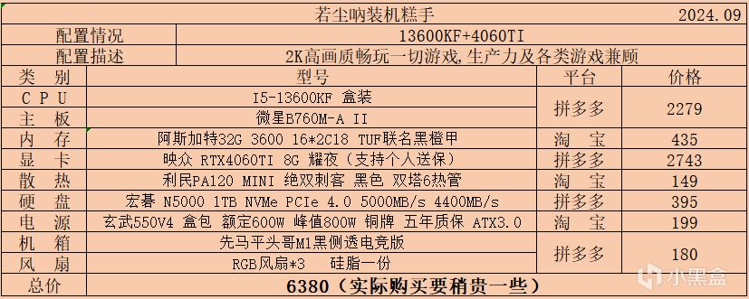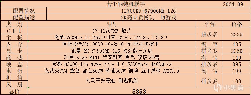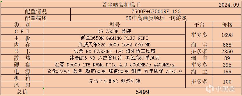 三、5000-6000價位,該價位也是經過我統計的盒友需求量比價大的一個預算區間,本次也是帶來了幾種不同搭配的配置單,幾乎滿足所有人的搭配需求,性能上已經能夠2K中高畫質遊玩絕大多數遊戲: