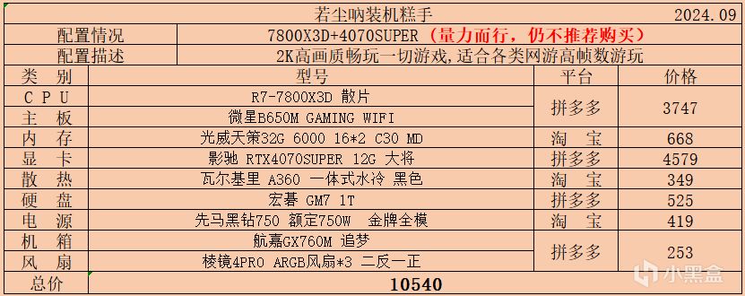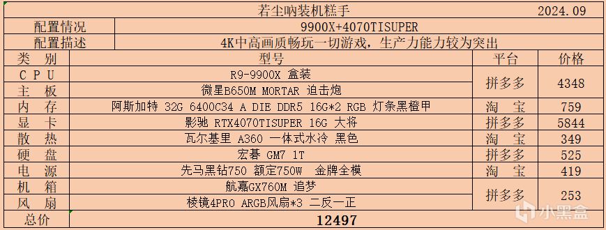 以上就是本月主機配置推薦,需要的盒友可按預算和需求斟酌購買,近期很多配件價格波動大, 要注意購買時機。