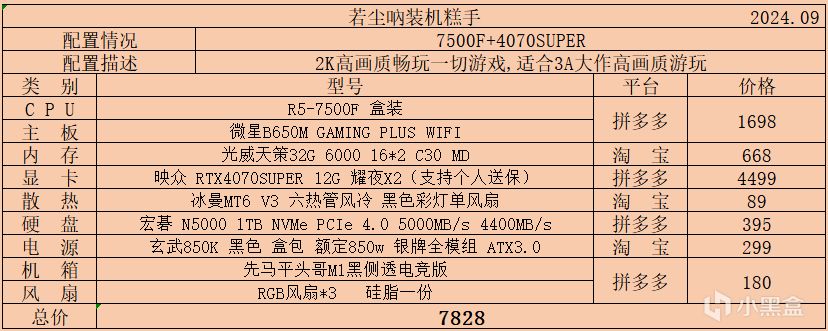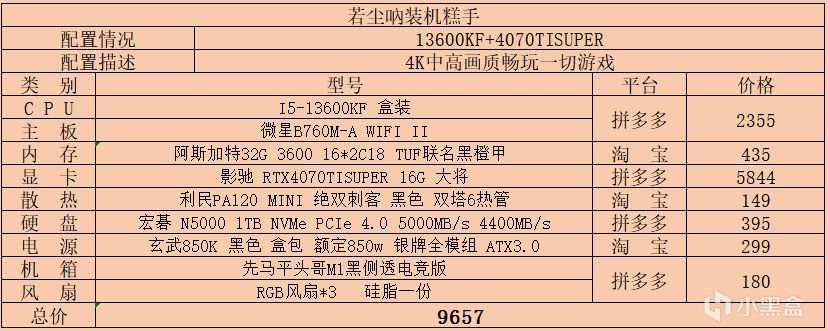 一、3000-4000價位,該價位不做過多推薦,但對於預算不是很足但又有着很大性能需求的盒友來說是有着非常大的參考價值的,所有配件保證全新的情況下最大程度上滿足了性能需求,能夠在1K中高畫質下暢玩一切遊戲:
