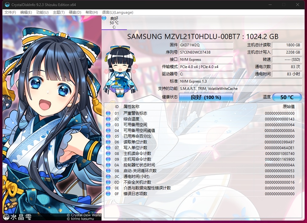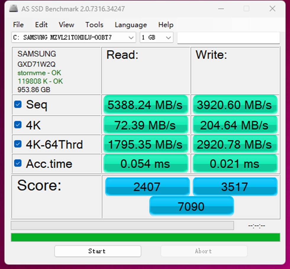 出廠預裝M2固態爲三星PM9A1a 1TB容量。