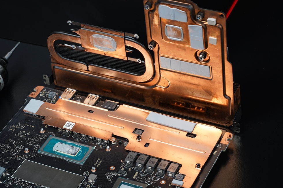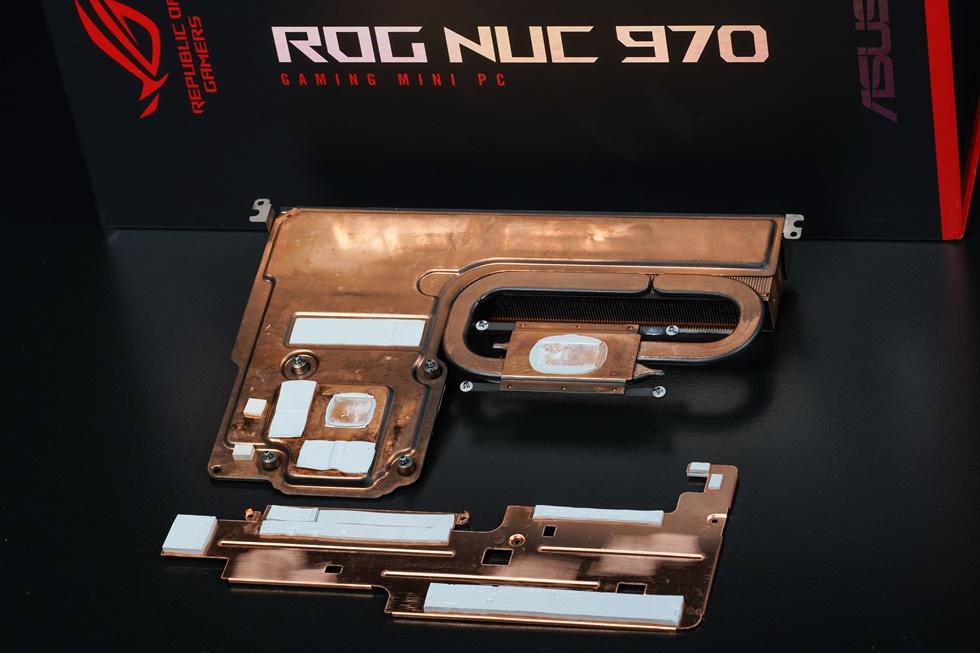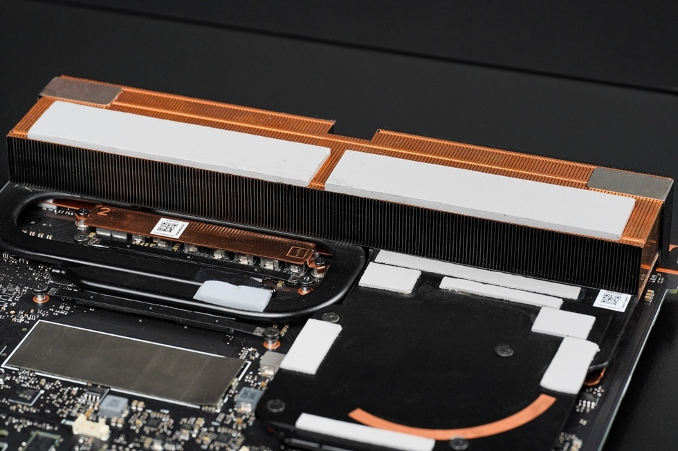 散熱模組全覽,一整片的純銅散熱片覆蓋了CPU以及GPU供電。
