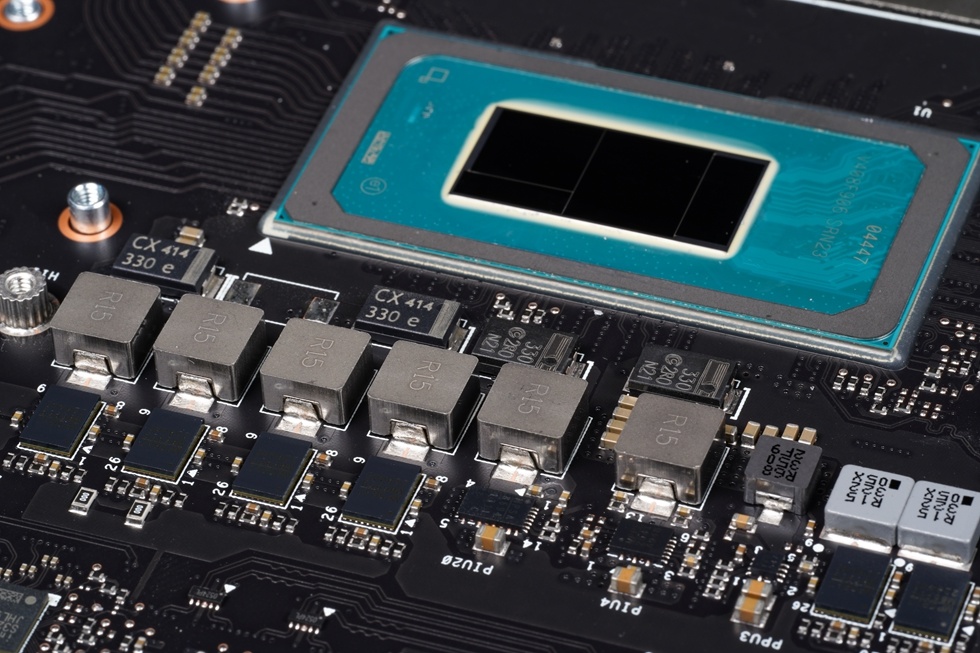 接下來爲中間部分,主板正面以及覆蓋碩大的散熱模組。
