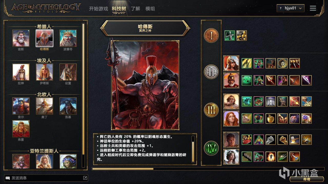 下一步是你還要選擇主神,每個主神會有各自不同的特性,比如希臘主神哈迪斯的特性是: