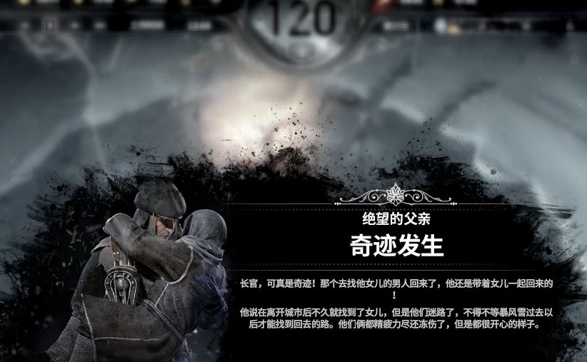在【新家】劇情的暴風雪前夕,有一名父親在零下50°時外出尋找他女兒,假如給他30份食物會選擇外出。