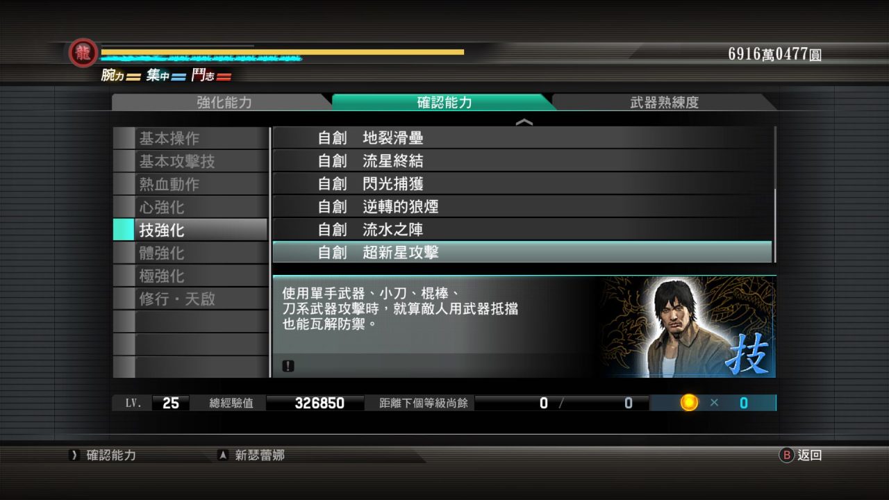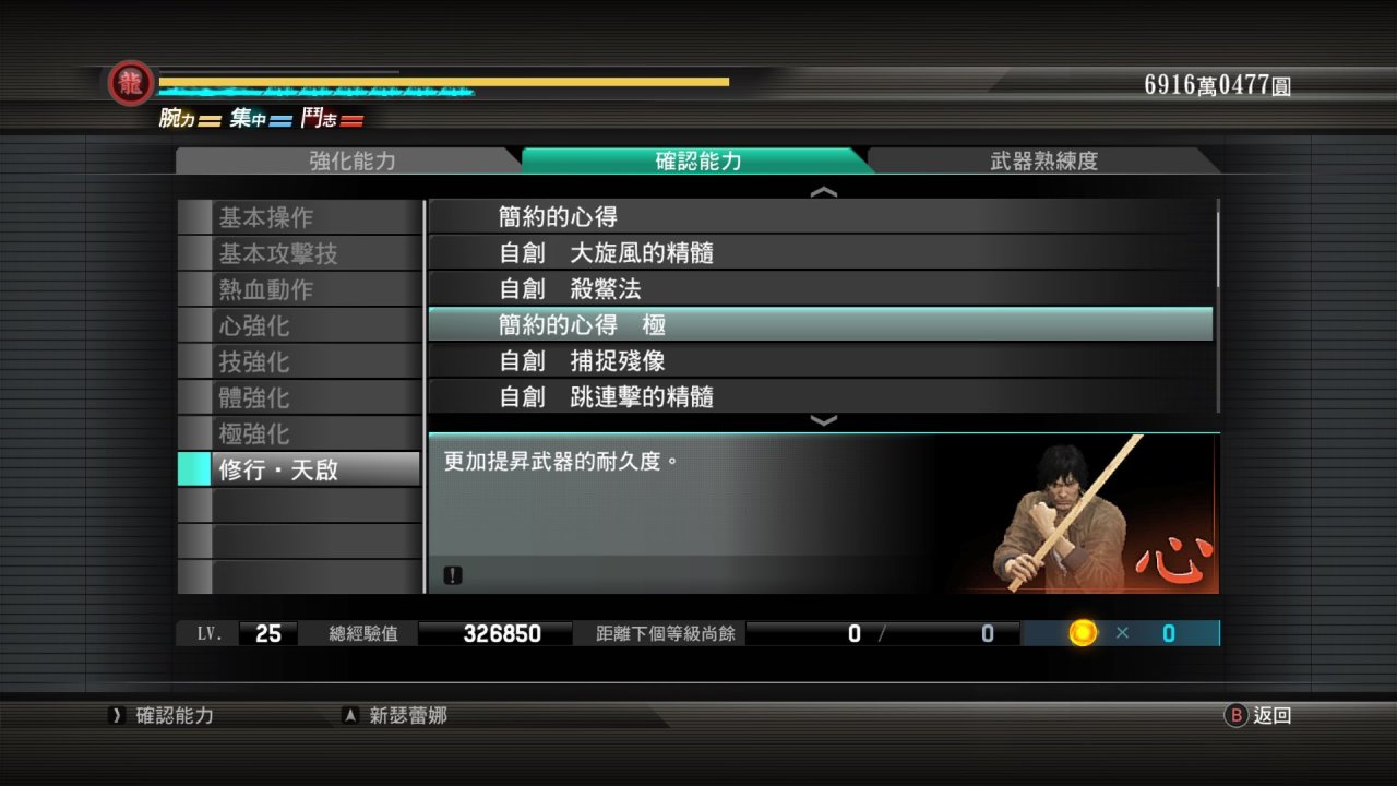 這次5代會有一個最大值參考標準,最大值爲10,本來是最高SSS數值9的,但是這代有個怪物,也只有這位怪物擁有唯一的數值Ex!另外本作氣力方面都差不多,只有冴島的會比其他主角差點,因爲需要放極的槽極長,所以基本都以S爲主!桐生在這代因爲有怒龍氣魄使得敏捷和對羣提升了一個檔次,並且打虎依舊霸道!