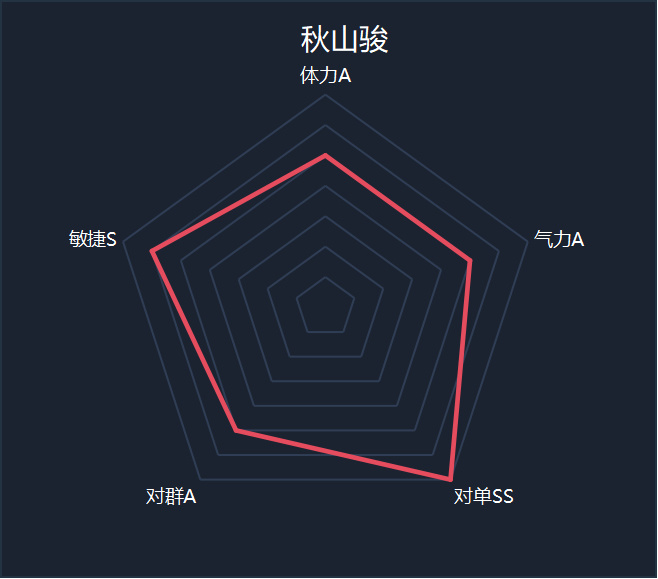 秋山的兩端側閃擁有獨特的技能,使得他不會在第二次做出翻滾的動作浪費抓對手破曉的機會,並且手感輕盈,閃得更快更遠,對羣是真喫力,在這次秋山也可以參加的競技場充分的展現,特別是鬥技場的狂戰士,秋山一沒有修羅的鬥氣(紅血用氣回血),二也沒有霸體,新加的特殊技收招慢,還好比較靈活並且後期技能學了之後對單有賴招!
