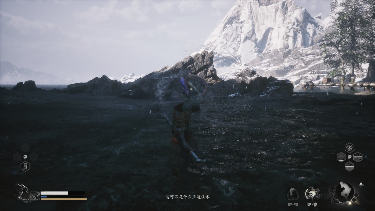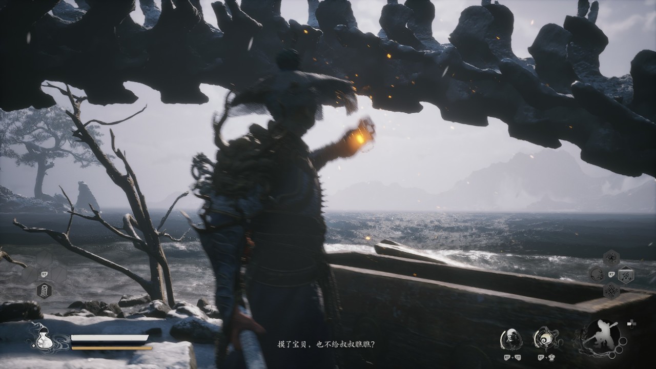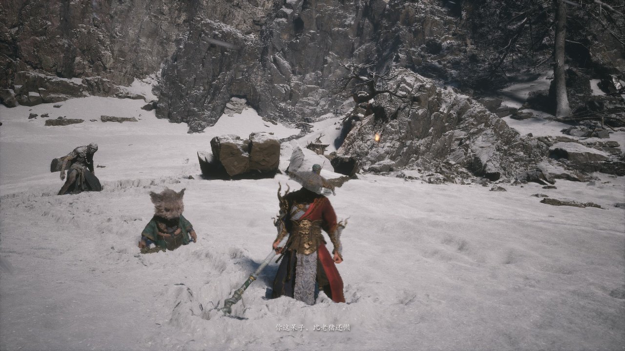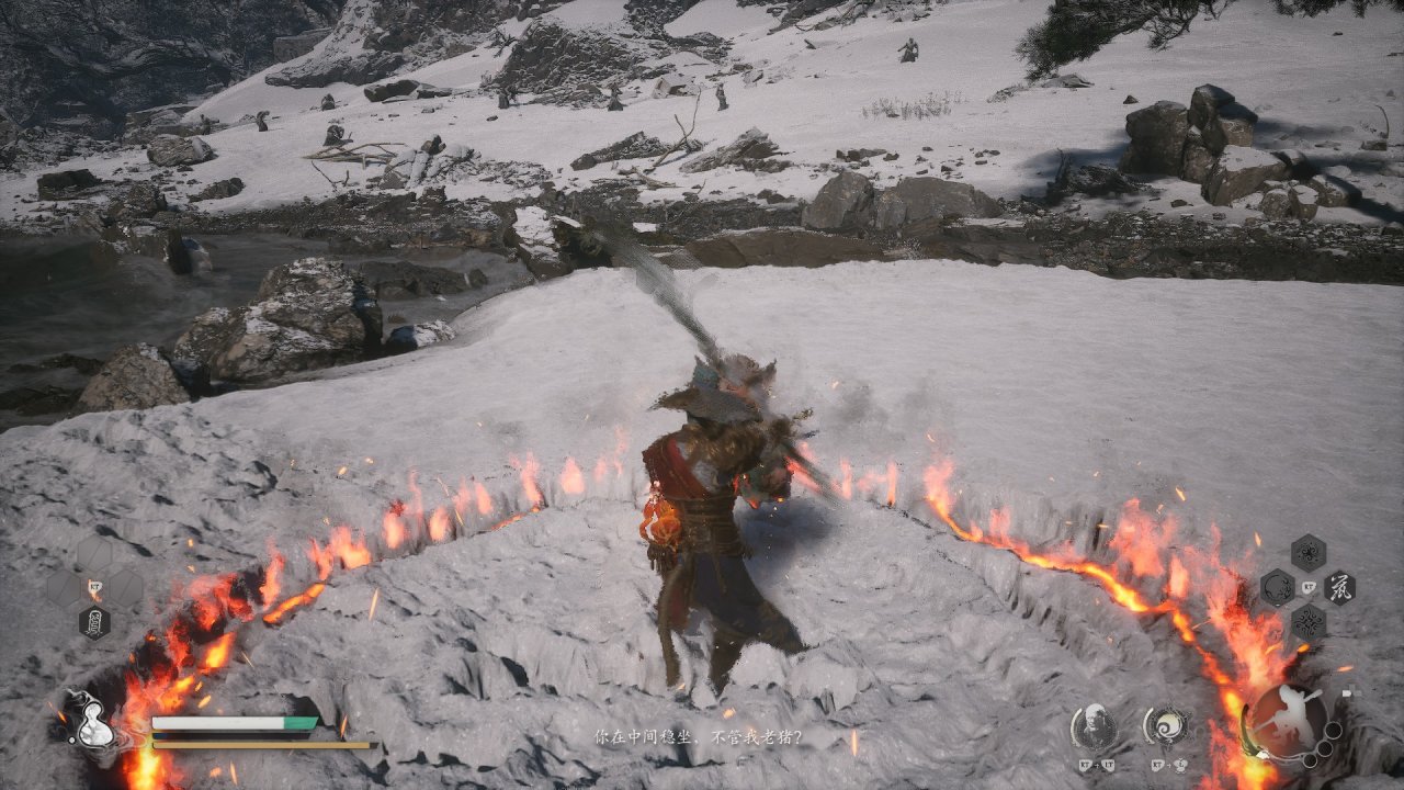 而在《黑神話》遊戲中,遊科很好的還原了這一點。八戒在旁時,只要玩家使用”安身法“,八戒一定會馬上吐槽一句。而且遊科特地在此處爲八戒設計了整整四句不同的文本!這是其他情況下幾乎沒有的。
