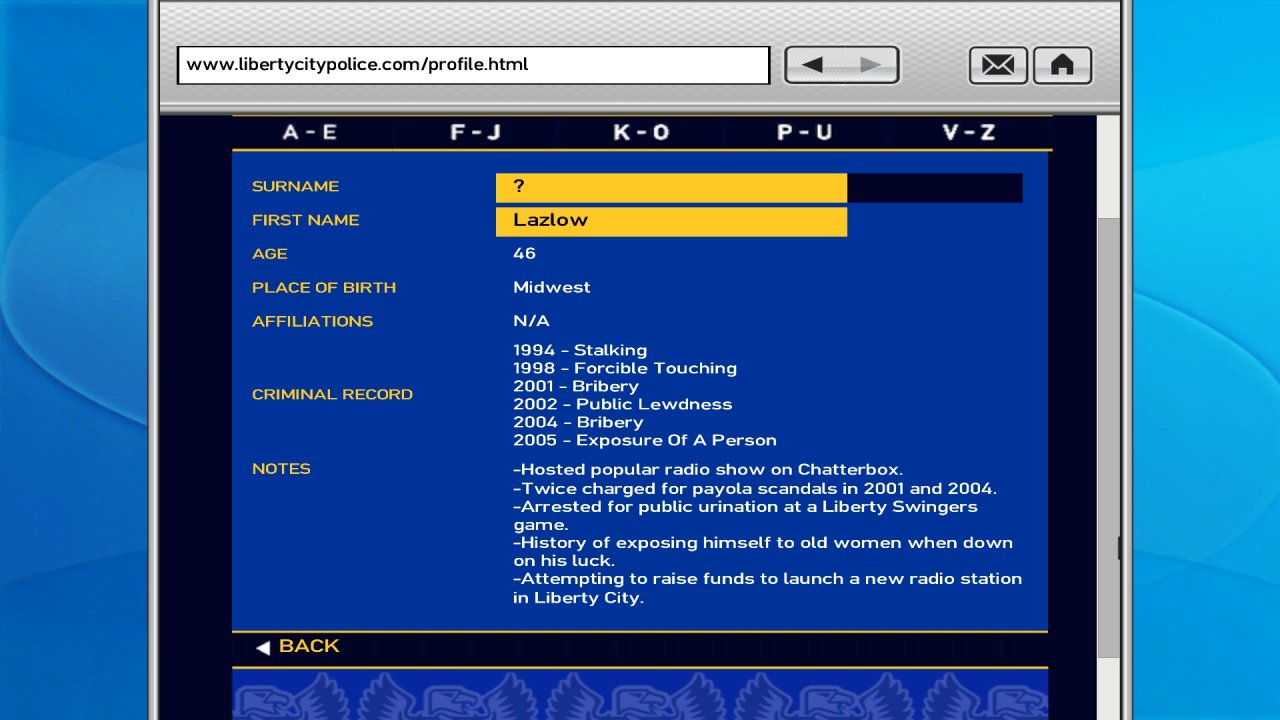 接下來的幾年裏 雷茲羅 屢屢犯罪被捕,在LCPD的內部系統可以查到他的犯罪記錄: