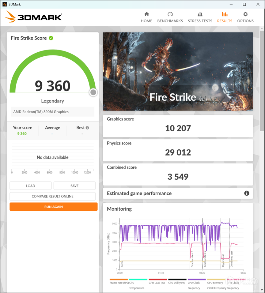 TS得分超4000,CPU破一萬,Graphic 3733。從監視器能看出,CPU和集成顯卡整個測試全程幾乎都維持在最高頻率運行。