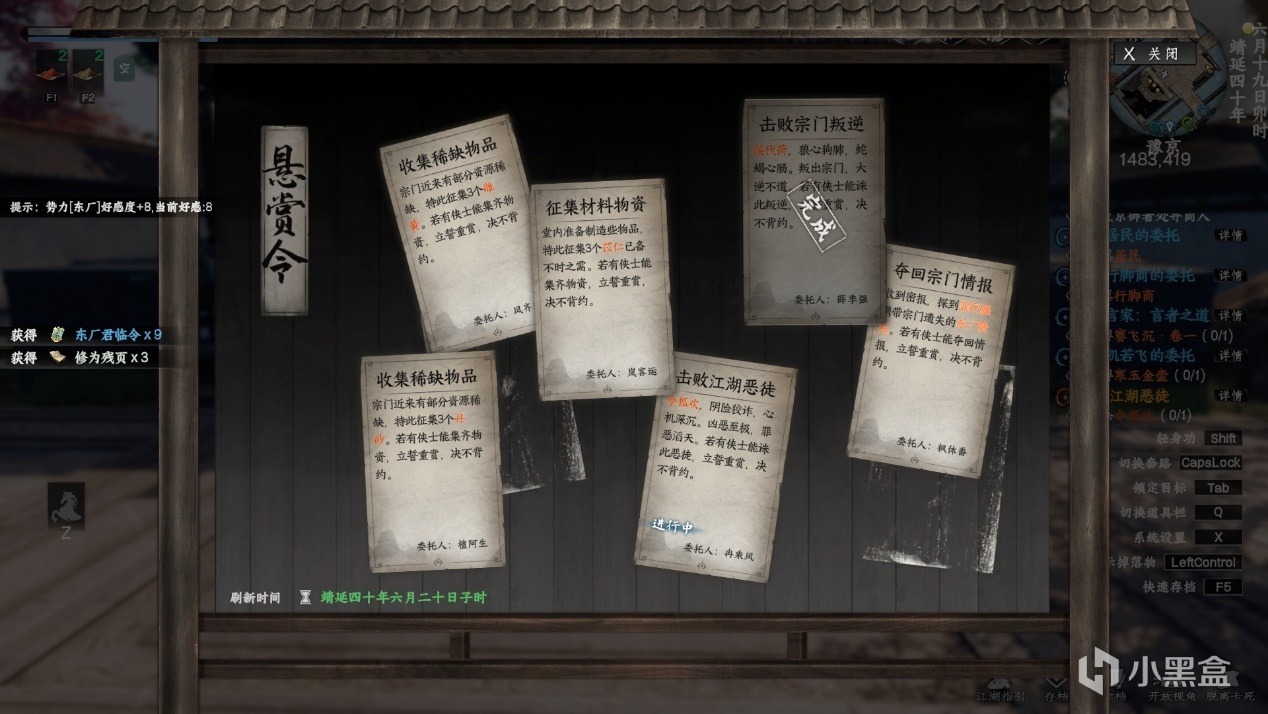 1.在東廠的懸賞太監趙大三人處接取各種懸賞