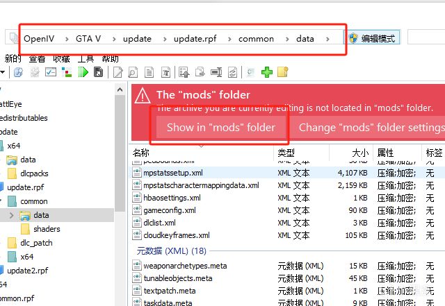 3、找到路徑爲OpenlV >GTAV>update>update.rpf >common> data
