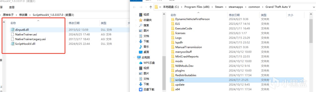 6、第二個文件ScriptHookV_1.0.3337.0(前置3)裏面文件全部拖進根目錄
