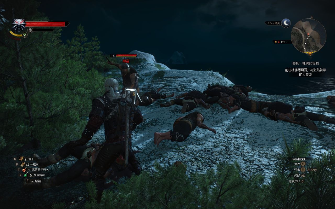 這兩個海盜會一個一個上,所以先用亞克席法印將先衝過來的海盜定住,用十字弓將另一個海盜爆頭,再打定住的海盜,一次亞克席的時間足夠殺死兩個海盜,注意保持適當的距離就行。(注意一定要爆頭)