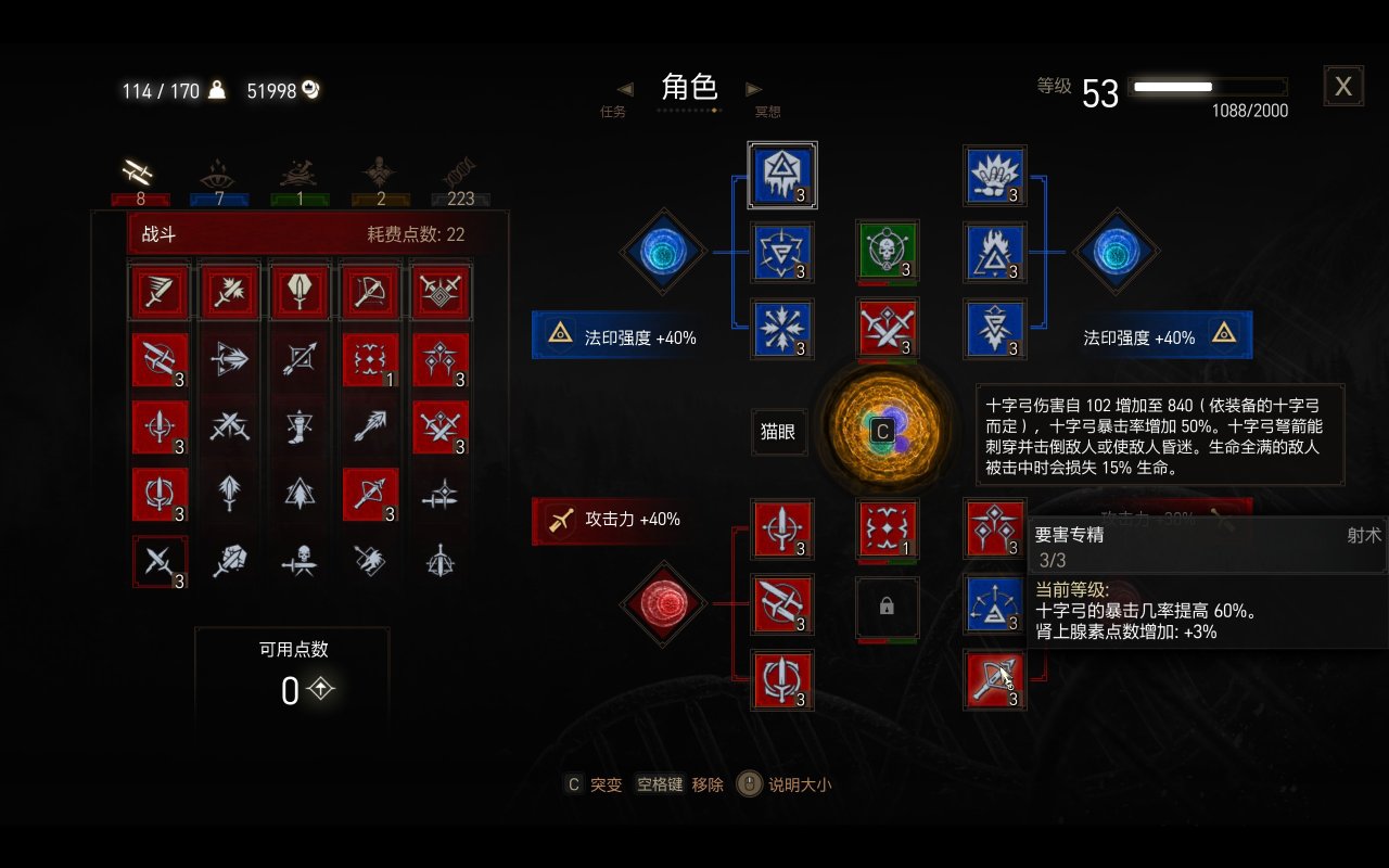 爲了提高效率節省時間,筆者建議後期解鎖突變(血與酒dlc),點出“貓眼”突變再完成這個成就會簡單很多。
