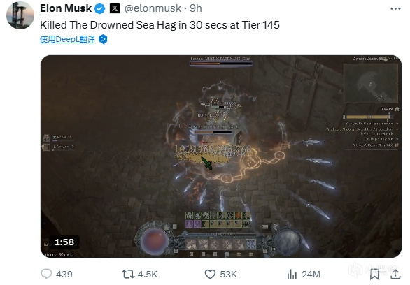在去年《暗黑4》發佈後,馬斯克就經常在社交媒體曬出自己的遊戲動態,馬斯克ID是“IWillNeverDie” (我永遠不死),前兩天星艦試飛,馬斯克還不忘分享在新DLC“憎恨之軀”中用新職業靈巫通關深坑145層和147層的視頻,按照馬斯克自己的說法,《暗黑4》也是目前他最主要的“解壓遊戲”。