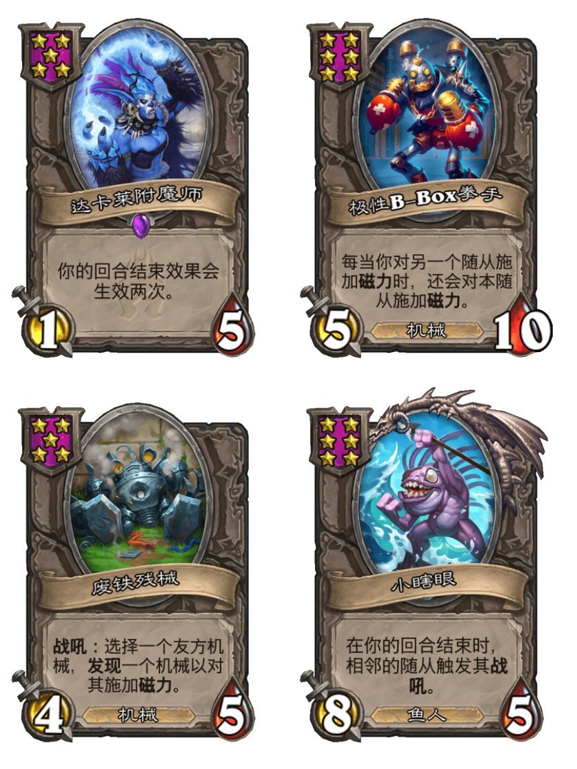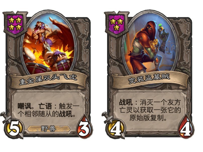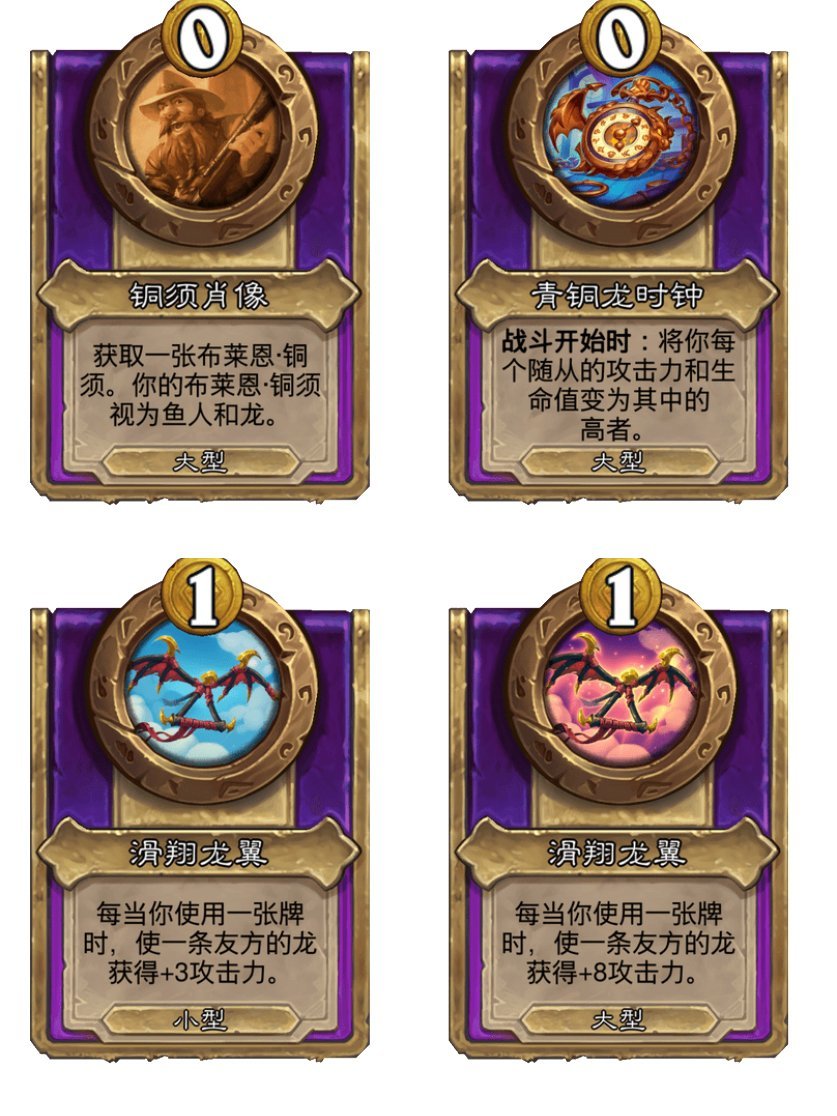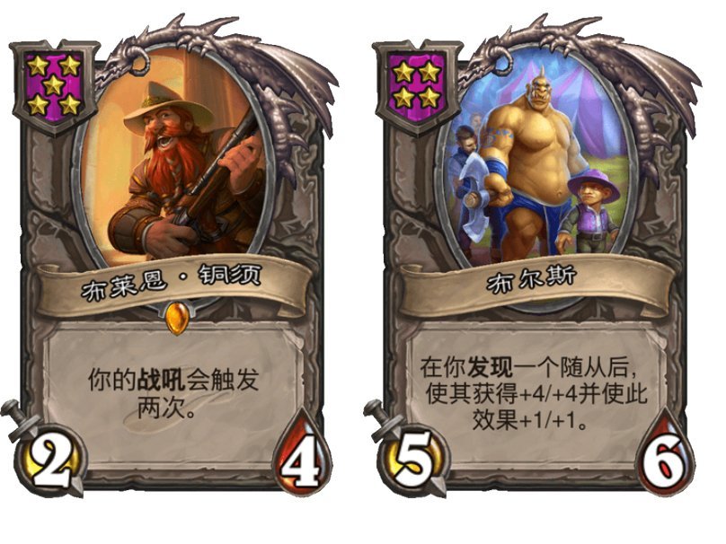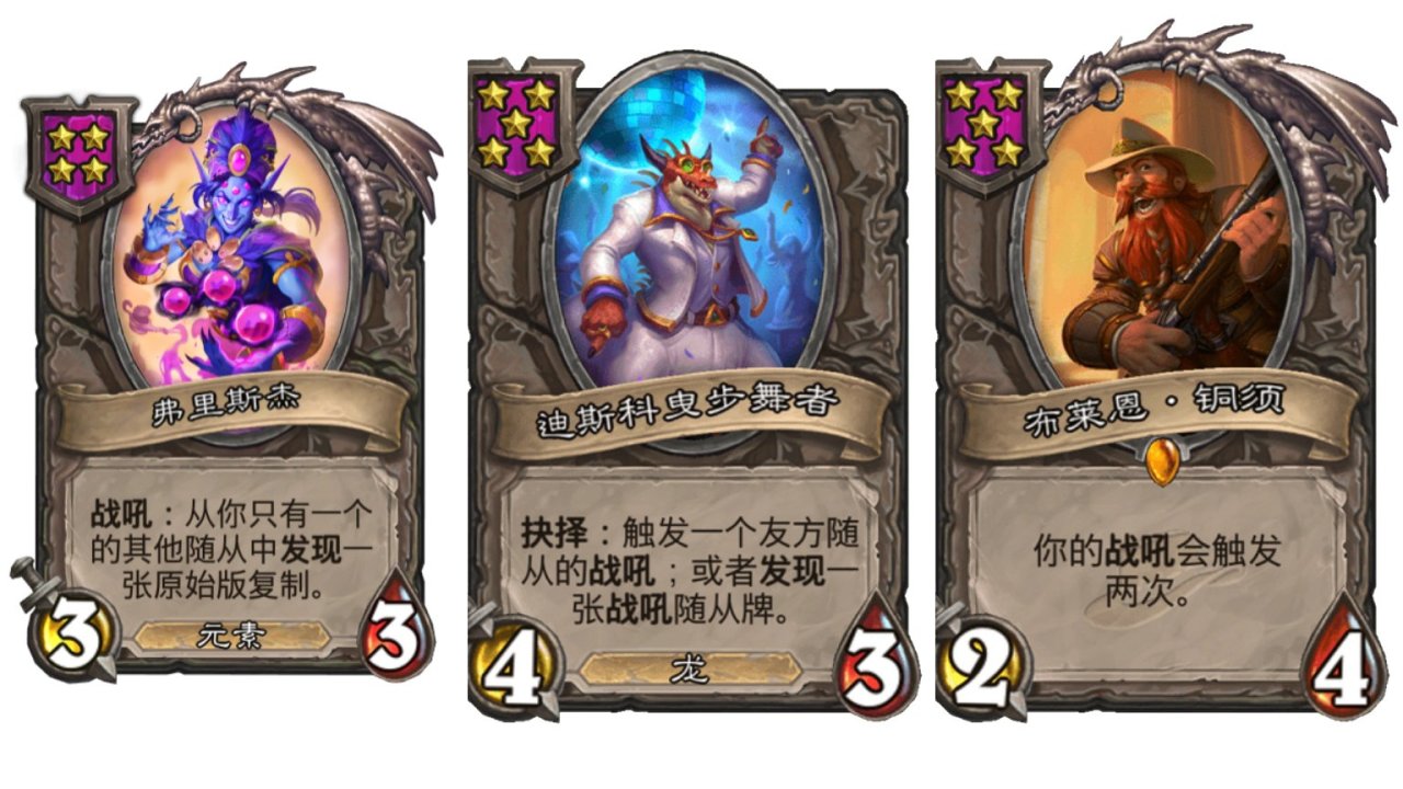 通過姐夫夥伴和抉擇龍觸發戰吼,可以反覆發現抉擇龍和另外一張想要的隨從牌(金銅須則是兩張),假設想要的隨從爲A,那麼場上包括手牌中除了A和抉擇龍以外的隨從都應該保持複數,防止姐夫夥伴發現不到A,獲取到A以後再賣掉,保證全場只有A和抉擇龍是單數,通過這個手段我們可以無限獲取A,那麼什麼手段可以通過打出場上就可以獲得收益呢,答案是戰吼