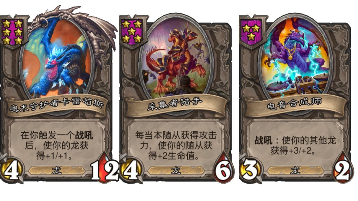 卡雷苟斯獲取戰吼收益,採集者獵手擴大收益,電音合成師提高效率(也就是我們想要的A),當然沒有電音合成師光靠抉擇龍也是能觸發戰吼特效的,就是效率會低一些。