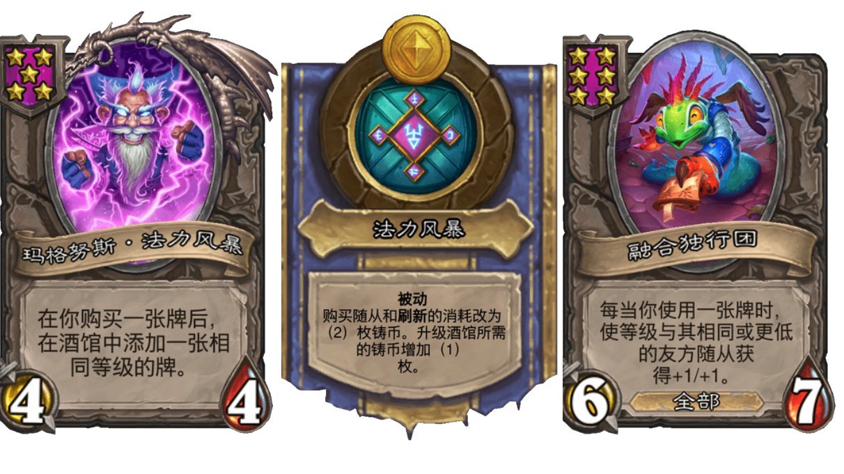 飾品全體酒館法術-1費,通過米老頭夥伴可以白嫖無限購買一本法術(二本理財法術多,也可以買),場上養多種族優質戰力