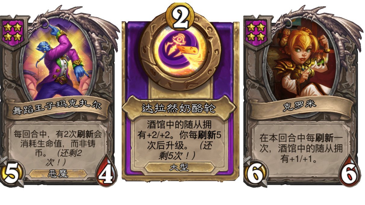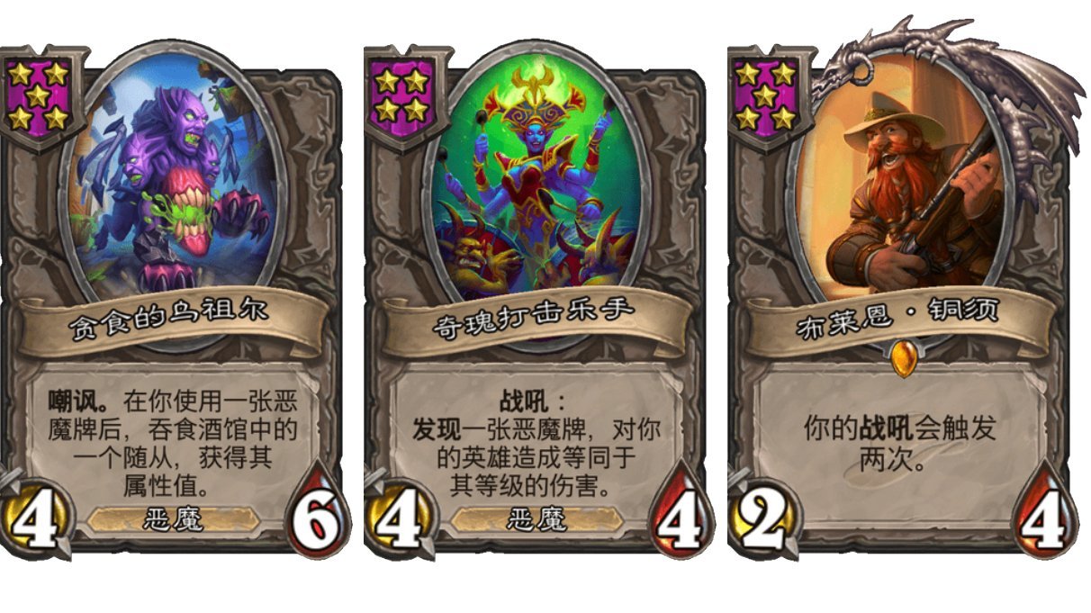 上面的大王夥伴也可以配合惡魔,惡魔就厲害了,現在版本養大酒館的手段很多,惡魔理財也多,可以跟銅須形成不錯的配合,重點是還有大哥烏祖爾,在這個前提下塞入大王夥伴更是錦上添花,此外惡魔種族跟不少夥伴相契合,比如克羅米,雷矛夥伴等,與飾品搭配起來可以非常迅速地做大酒館。惡魔想要煮書辦法實在是太多了,就不一一列舉。