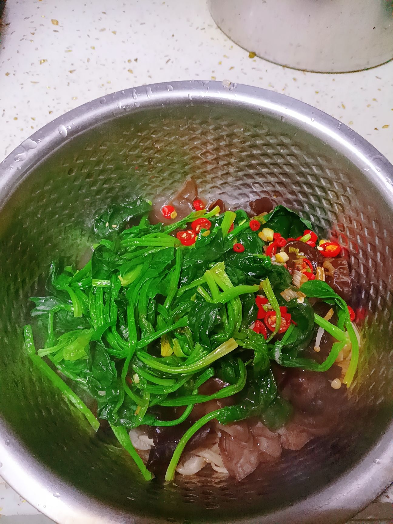 食材:菠菜,蔥,金針菇,木耳,小米椒,